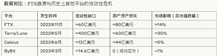 實例:FTX崩潰前,當提款請求激增時,流動性匱乏無法滿足用戶的提款需求,最終加速了其倒閉。對比ByBit今年的駭客事件,則因為多數頭部交易所已建立超額儲備,足以應付用戶提領,保護了其營運與品牌聲譽