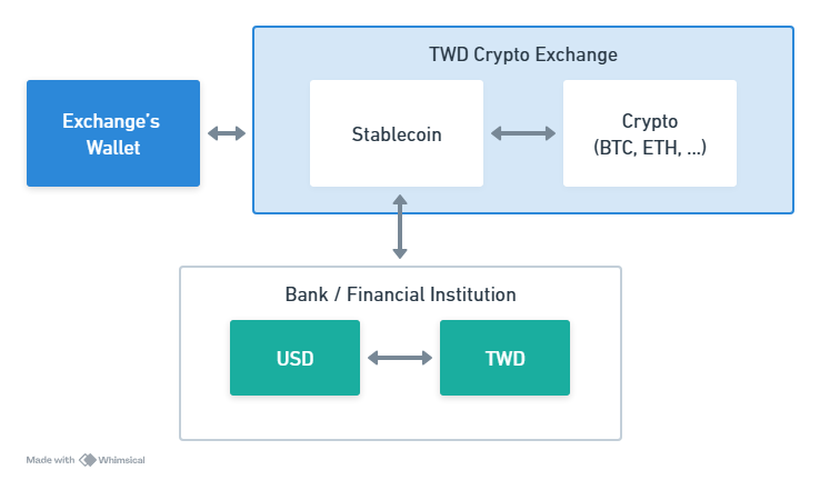舉個具體例子:當用戶欲將交易所中的 Dogecoin 提領至外部錢包時,若該交易所本身的 Doge 庫存不足,就必須臨時到市場上購買 Doge 來補足。然而這項行為需要使用 USDT 來購買,但如果交易所當時並未持有足量穩定幣,便需先使用台幣購買 USDT,再用 USDT 換取 Doge。
